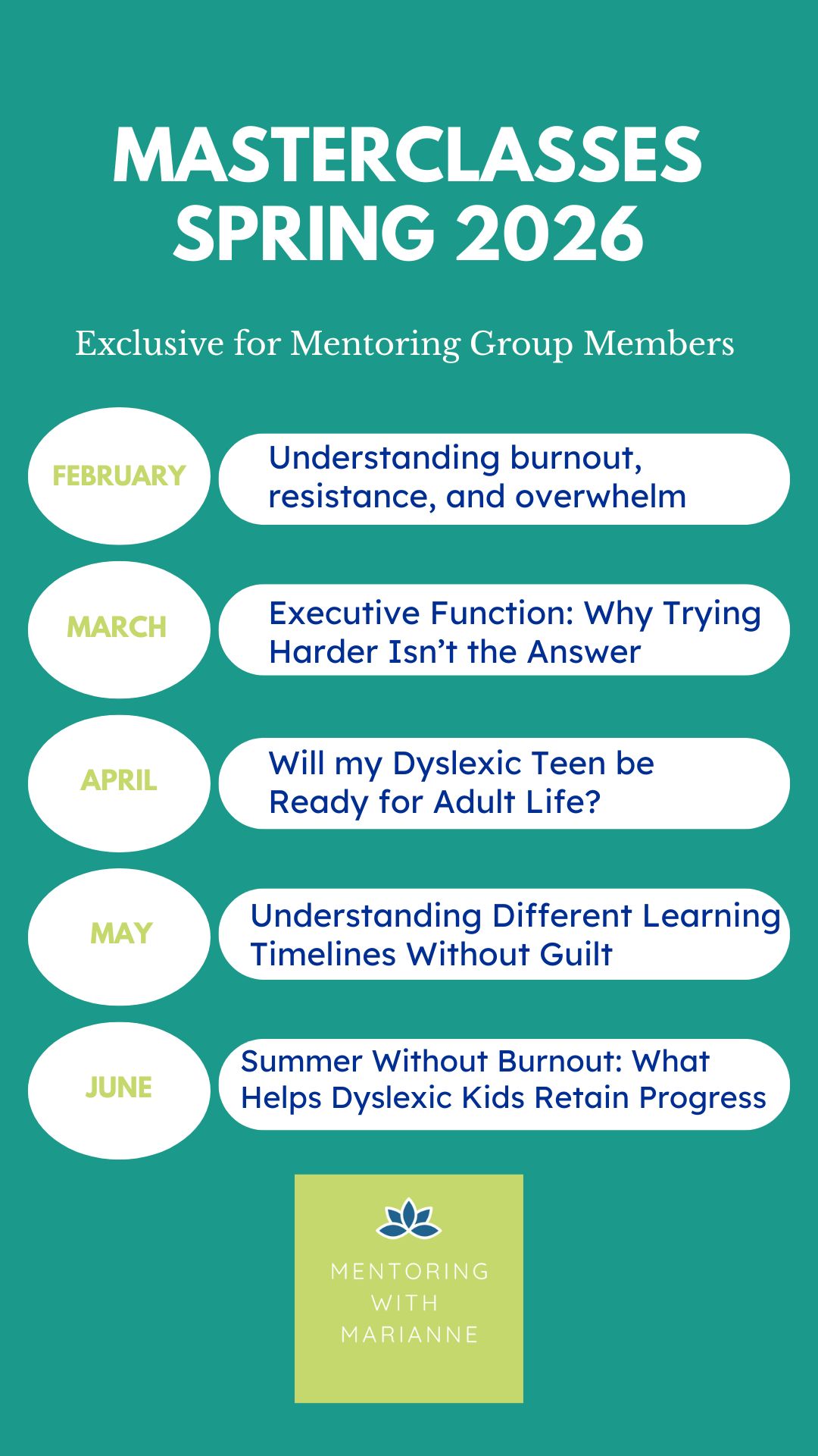 Masterclass Schedule Spring 2026